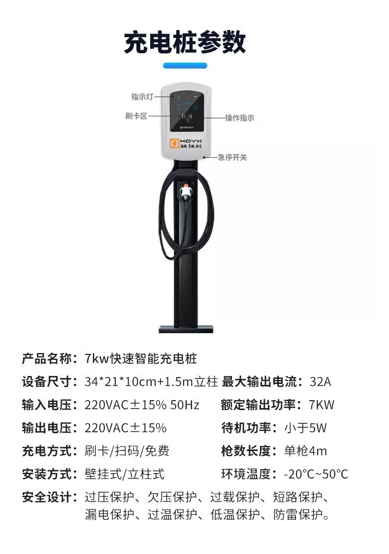 EV新能源电动汽车充电桩220V工程商用家用壁挂