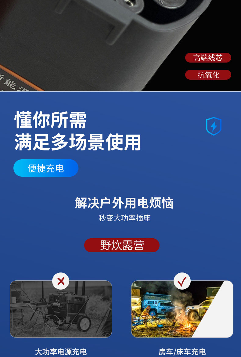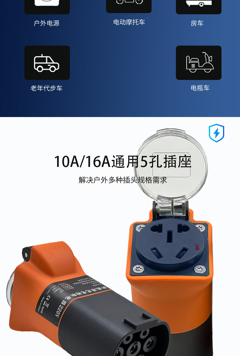 充电桩转换头220V交流新能源充电枪取电器七孔插头座房车大炮电摩